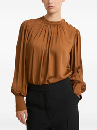 button-embellishment blouse Highlights - Brown - High neck - Pleated detailing - Long sleeves - Button embellishment Made in France Composition Viscose Satin 100% Washing instructions Read Manufacturer Guidelines