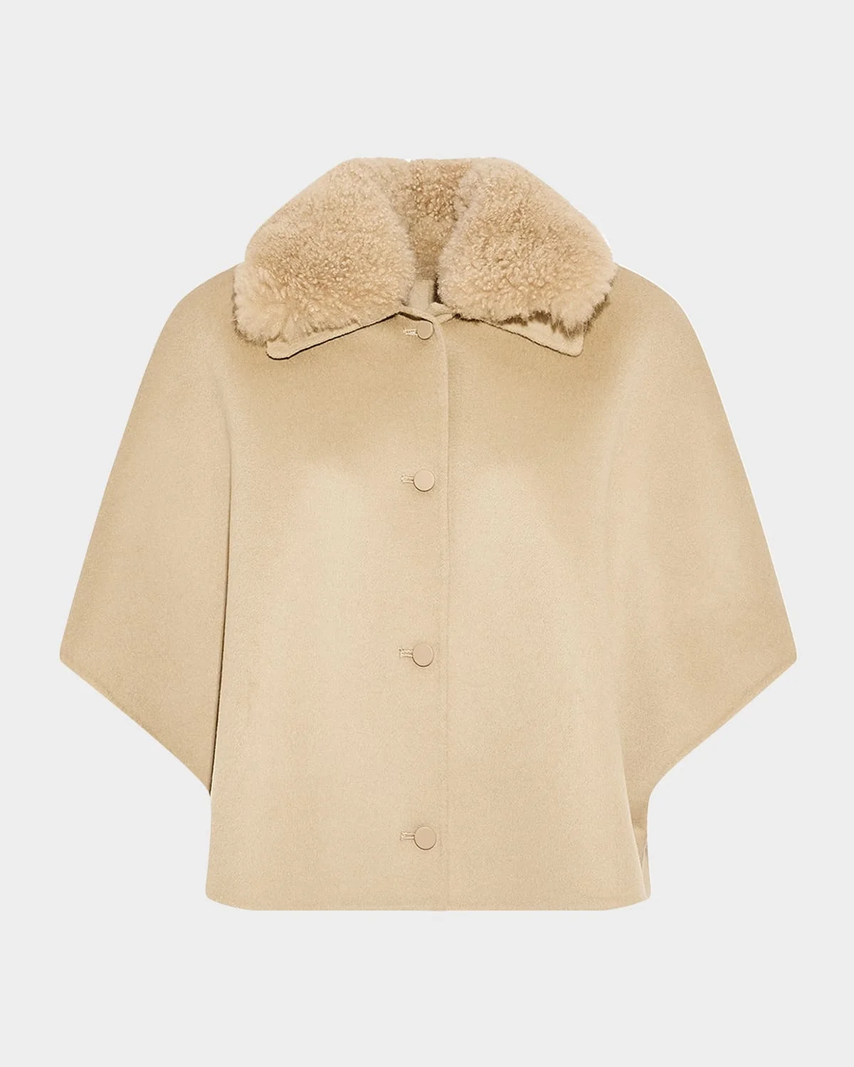 Cashmere-Blend Cape with Removable Shearling Collar