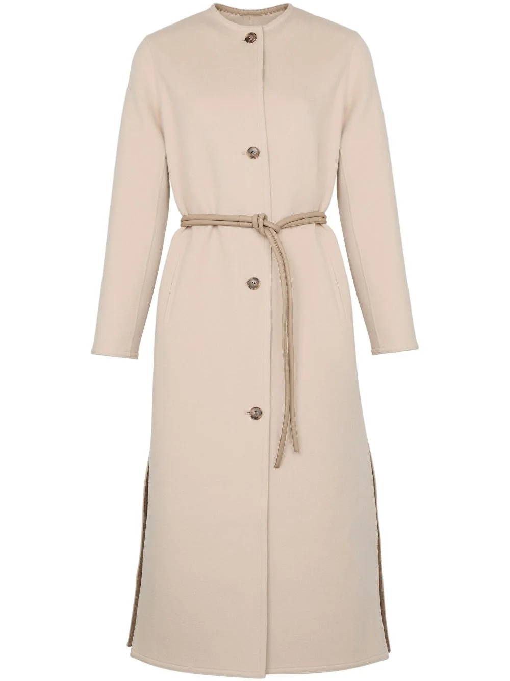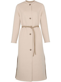 cashmere-blend coat Highlights - Light beige - Front button fastening - Two side slit pockets - Detachable waist belt - Side slits Made in France Composition Wool 81%, Lambskin 10%, Cashmere 9% Washing instructions Dry Clean Only
