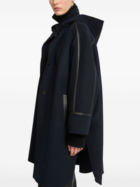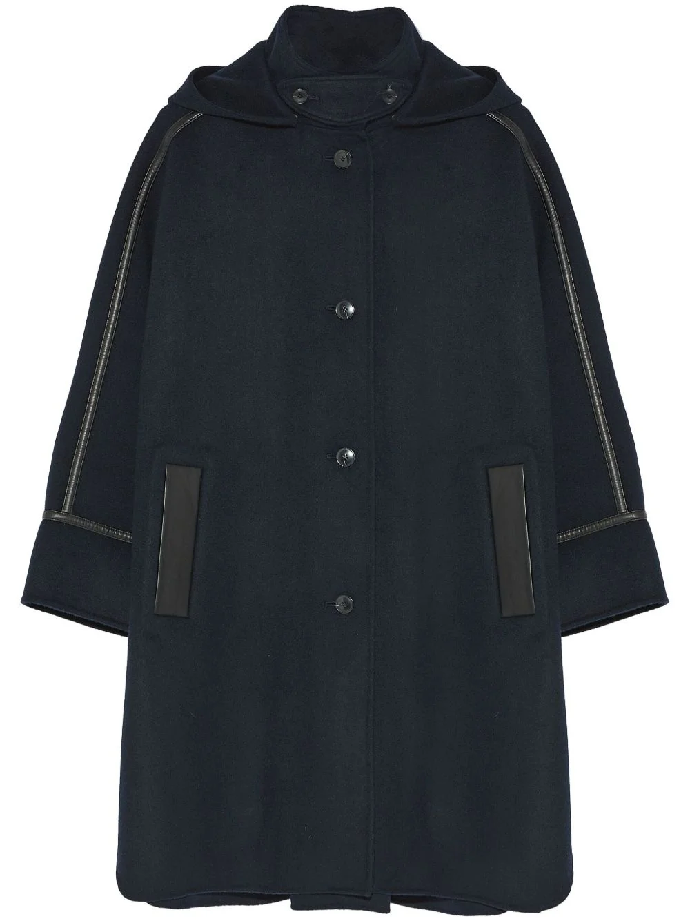 cashmere-blend hooded cape Highlights - Midnight blue - Cashmere blend - Detachable hood - Front button fastening - Leather trim - Long sleeves - Two side welt pockets - Straight hem Made in France Composition Lambs Wool 90%, Cashmere 10%
