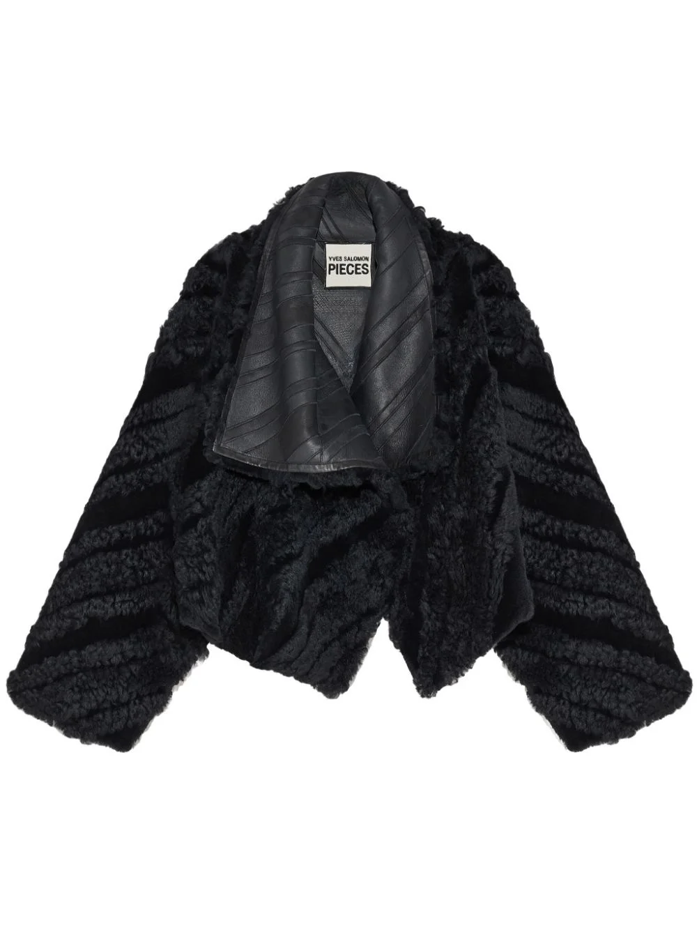 cropped draped jacket Highlights - Jet black - Sheepskin/shearling - Multi-way stripe pattern - Oversized pointed collar - Press-stud fastening - Long sleeves - Asymmetric hem - Cropped - Unlined Made in France Composition Lining: Sheep Skin/Shearling 100% Outer: Lamb Fur 100%