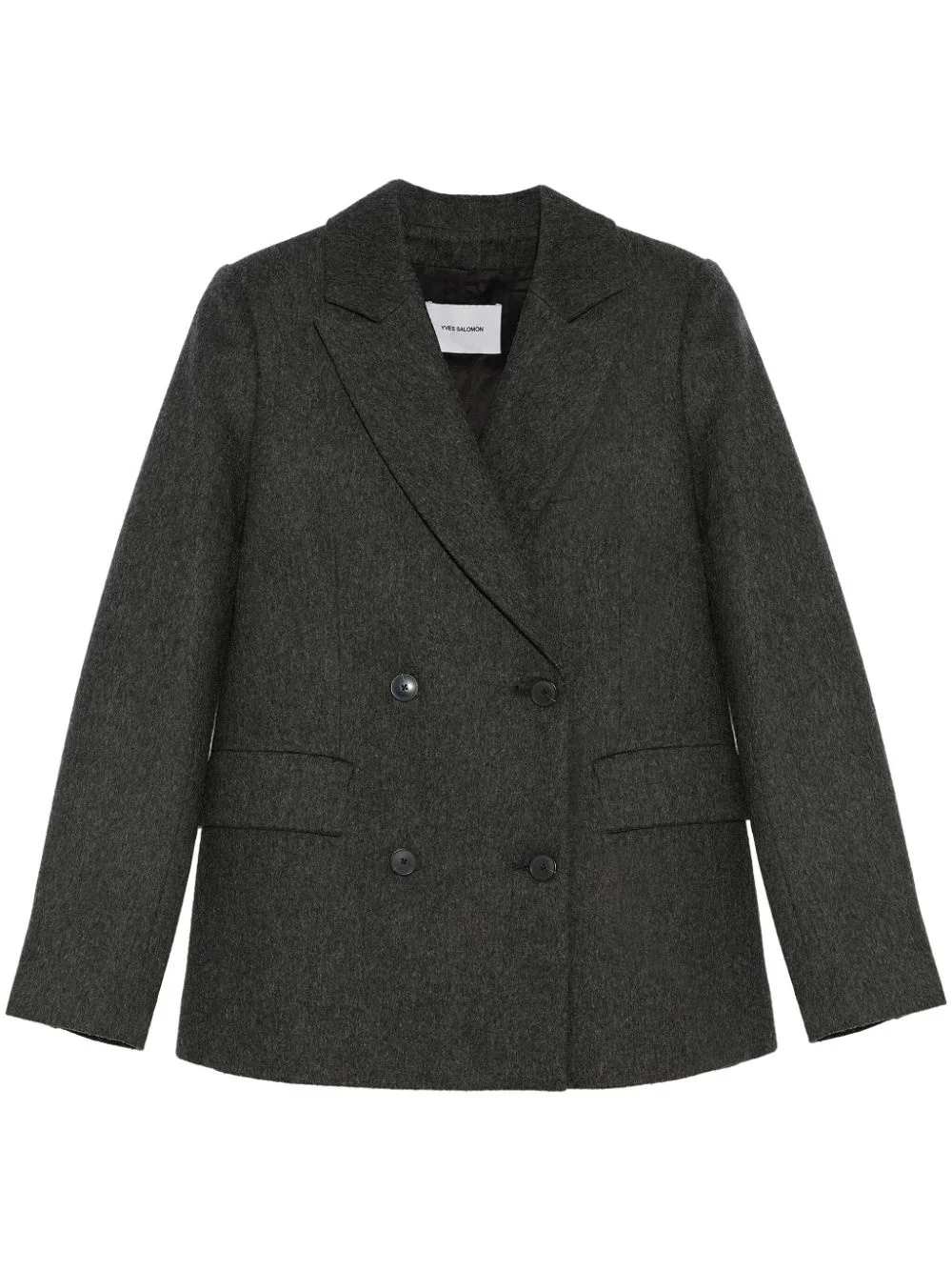double breasted blazer Highlights - Dark grey - Virgin wool - Double-breasted button fastening - Notched lapels - Two side flap pockets - Chest welt pocket - Shoulder pads Made in France Composition Lining: Polyester 100% Outer: Virgin Wool 100%