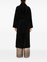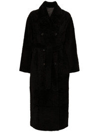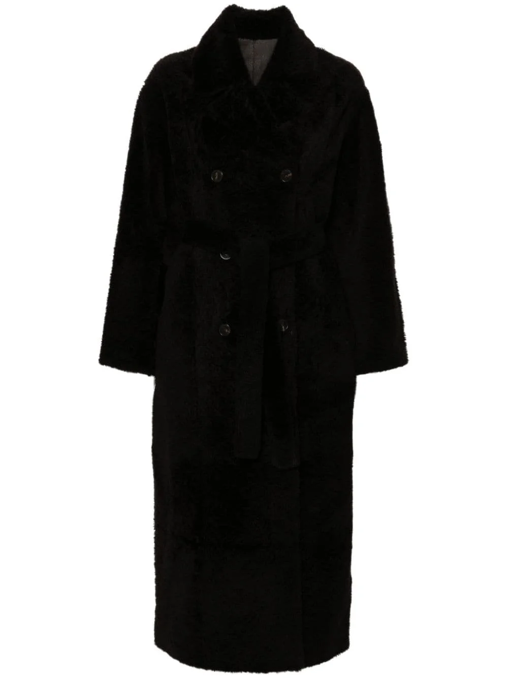 double-breasted coatq Highlights - Black - Brushed finish - Notched lapels - Double-breasted button fastening - Long sleeves - Two side welt pockets - Belt loops - Straight hem - Long length - Leather lining Imported Composition Outer: Lamb Fur 100% Washing instructions Specialist Cleaning