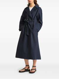 double-breasted trenchcoat Highlights - Navy blue - Double-breasted button fastening - Two side welt pockets - Belted waist - Notched lapels Made in France Composition Cotton 55%, Linen/Flax 30%, Polyamide 10%, Lambskin 5% Washing instructions Dry Clean Only
