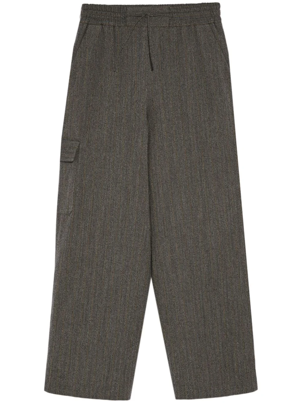 drawstring cargo trousers Highlights - Grey - Wool blend - Flannel - Elasticated hem - Drawstring hem - Two side inset pockets - Side cargo pocket - Wide leg Made in France Composition Outer: Wool 70%, Polyamide 30% Lining: Polyester 100%