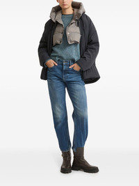 drawstring-neck down jacket Highlights - Navy blue - Lambs wool - Duck down - Drawstring neck - Front two-way zip fastening - Press-stud placket - Water-repellent - Long sleeves - Front zip fastening pockets Made in France Composition Lambs Wool 100%, Duck Down 95%, Duck Feathers 5%