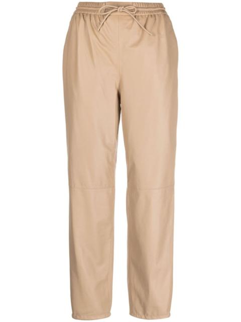 drawstring-waist lambskin trousers olive green lambskin silk blend elasticated drawstring waistband straight leg cropped Made in France Composition Lining: Silk 59%, Cupro 41% Outer: Lamb Skin 100% SIZE & FIT Model measurements Height 5 ft 11 in(1.8 m) Bust/Chest 31.88 in(81 cm) Hips 35.03 in(89 cm) Waist 24.01 in(61 cm) FittingInformation This piece fits true to size. We recommend you get your regular size Designed to be fitted at the waist and hips, loose over the leg Made with a mid-weight non-stretch fabric Washing instructions Specialist Cleaning