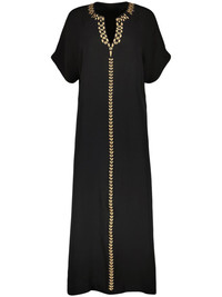 embroidered silk dress Highlights - Black - Pull-on style - V-neck - Short sleeves - Long length Made in France Composition Silk 100%