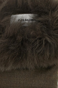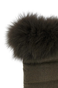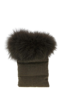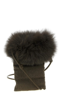cod. 26W26WAA017XXWO2WA9127 'Etui' quilted flannel smartphone holder with goose down padding, top covered in fox fur, leather shoulder strap. Color: Brown Size & Fit: W 14.5 x H 21.5 cm Composition: 76% wv, 20% fox, 4% se Made in: France