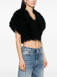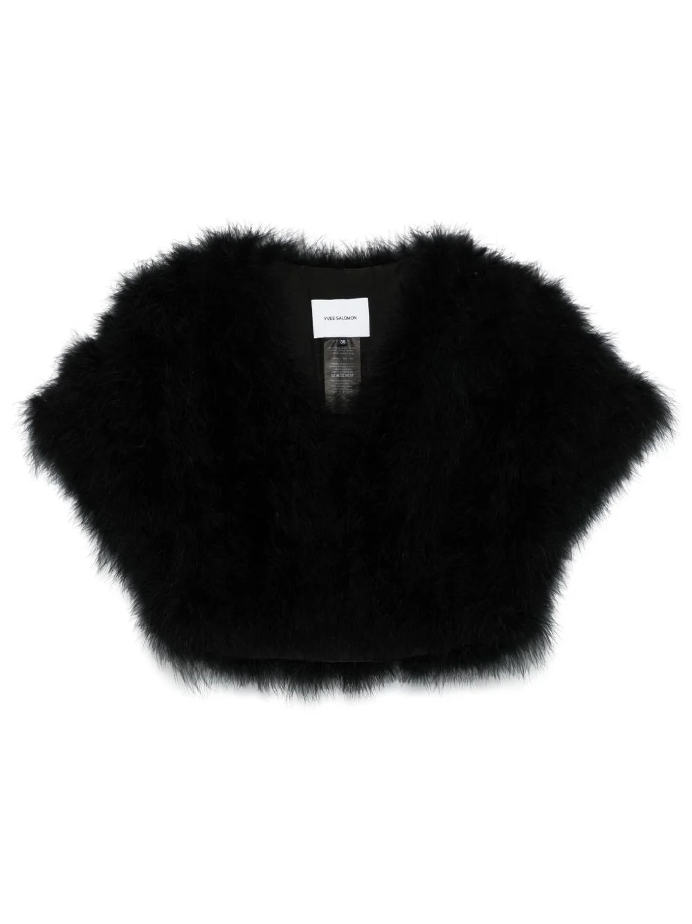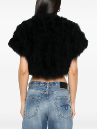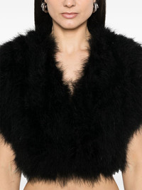 feather jacket Highlights - Black - Hook fastening - Short sleeves - Cropped Imported Composition Lining: Silk 100% Outer: Turkey Feather 100% SIZE & FIT Model measurements Height 5 ft 11 in(1.8 m) Bust/Chest 33.07 in(84 cm) Hips 37.4 in(95 cm) Waist 25.19 in(64 cm) FittingInformation Designed for a slim fit that sits just away from the body offering a close yet comfortable fit Made from a midweight fabric Washing instructions Do Not Wash/Do Not Dry Clean