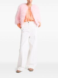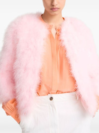 feather jacket Highlights - Light pink - Front hook and eye fastening - Round neck - Three-quarter length sleeves Made in France Composition Outer: Feather 100% Lining: Silk 100%