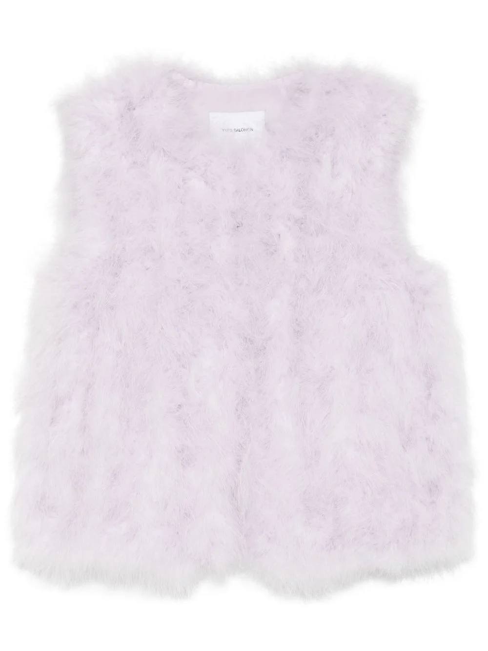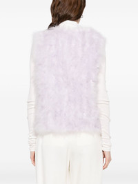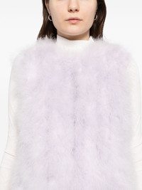 feather silk vest Highlights - Lavender purple - Hook fastening - Two side inset pockets - Sleeveless Made in France Composition Lining: Silk 100% Outer: Turkey Feather 100% SIZE & FIT Model measurements Height 5 ft 10 in(1.78 m) Bust/Chest 32.67 in(83 cm) Hips 37 in(94 cm) Waist 25.59 in(65 cm) FittingInformation Designed for a slim fit that sits just away from the body offering a close yet comfortable fit Made from a midweight non-stretch fabric