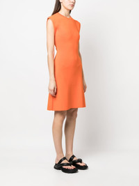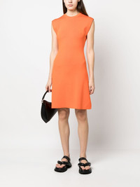 fine-ribbed sleeveless mini dress tangerine orange fine ribbed round neck sleeveless straight hem above-knee length Made in France Composition Rayon 70%, Polyester 30% SIZE & FIT Model measurements Height 5 ft 11 in(1.8 m) Bust/Chest 31.49 in(80 cm) Hips 36.22 in(92 cm) Waist 25.59 in(65 cm) FittingInformation Designed for a close fit throughout Made with a midweight knit, this piece offers some stretch This piece fits true to size – take your usual size Washing instructions Machine Wash