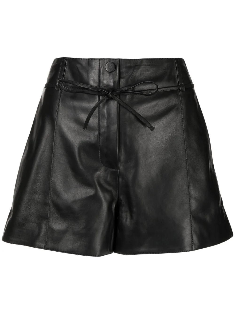 flared drawstring shorts black belt loops crease effect flared above-knee length drawstring fastening waist front button and zip fastening two diagonal pockets to the sides two rear welt pockets Made in France Composition Body: Polyester 100% Washing instructions Dry Clean Only
