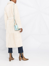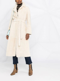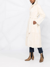 full-length shearling coat white lambskin shearling lining shearling trim full-length tied waist long sleeves Made in France Composition Lining: Lamb Skin 100% Outer: Lamb Fur 100% SIZE & FIT Model measurements Height 5 ft 11 in(1.8 m) Bust/Chest 31.49 in(80 cm) Hips 36.61 in(93 cm) Waist 24.4 in(62 cm) FittingInformation This piece fits true to size. We recommend you get your regular size Cut for a loose fit. Comes with an adjustable belt for a flexible fit at the waist Made with a mid-weight non-stretch fabric Washing instructions Specialist Cleaning