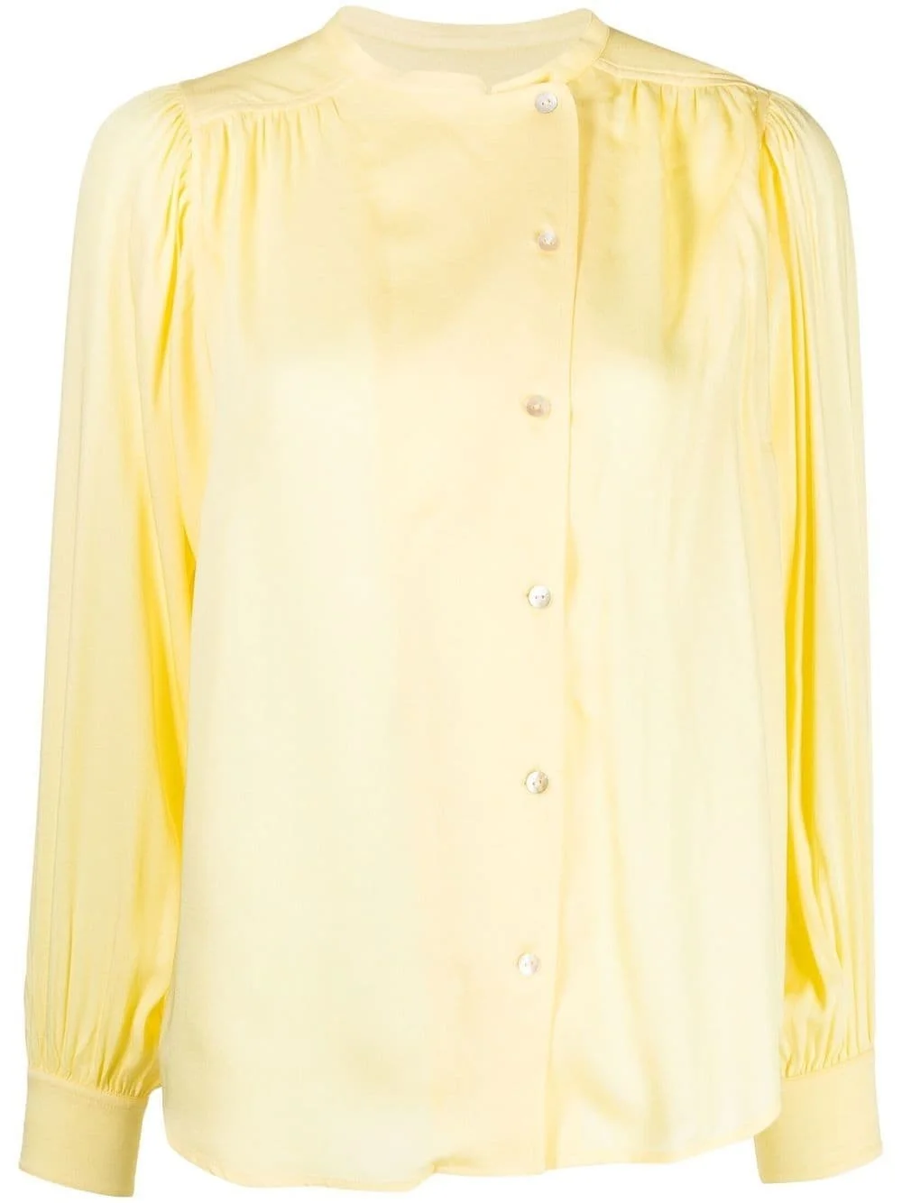 gathered-detail off-centre blouse citron pale yellow gathered detailing curved hem off-centre front button fastening buttoned-cuff sleeves long sleeves Made in France Composition Body: Viscose 100% Washing instructions Dry Clean Only