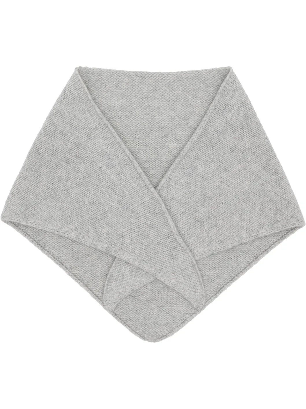 Triangular knit cashmere bandana-style scarf. · Rolled edge at collar · L36" x W14" Supplier color: Light grey 100% cashmere. Made in France 252594F028002
