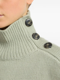 high-neck button-detail sweater Highlights - Pale green - High neck - Button detail shoulder - Ribbed hem - Long sleeves - Wool-cashmere blend Made in France Composition Organic Wool 70%, Cashmere 30% Washing instructions Read Manufacturer Guidelines