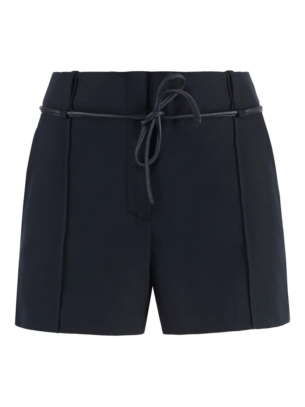 high-waist shorts Highlights - Midnight blue - Concealed front fastening - Self-tie fastening - Belt loops - Two rear welt pockets Made in France Composition Polyester 55%, Wool 45%