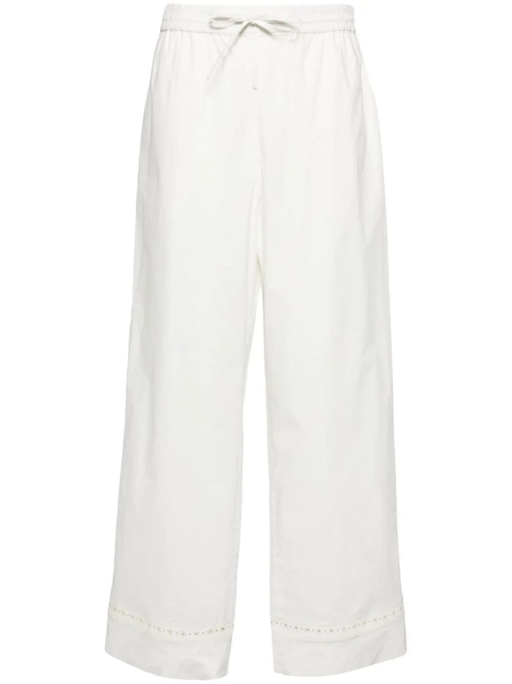high-waist straight-leg trousers Highlights - White - Stretch-cotton - Openwork areas - Elasticated waistband - Straight leg - Drawstring fastening Made in France Composition Cotton 94%, Elastane 6%