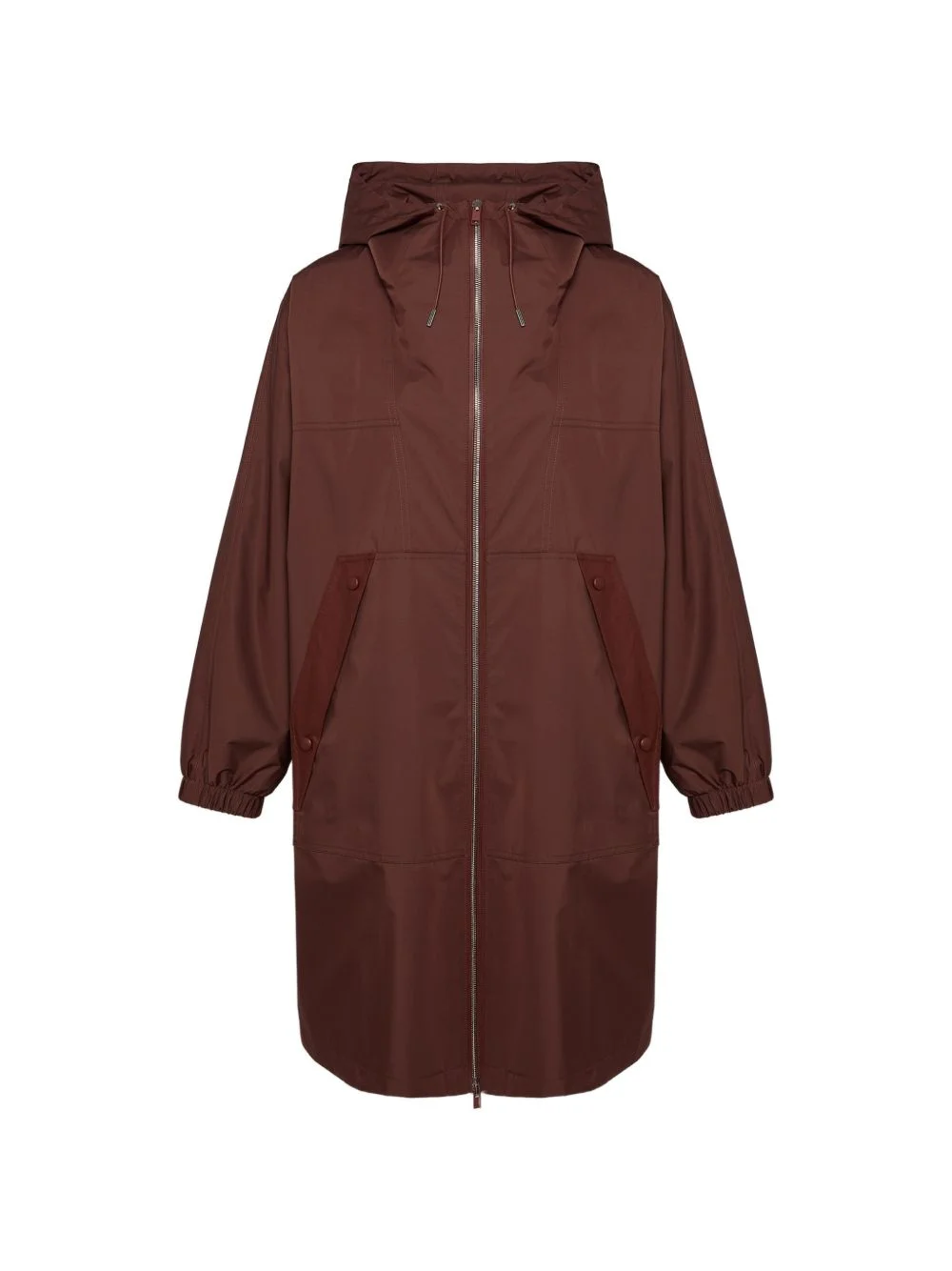 hooded coat Highlights - Rust brown - Hooded - Zip fastening - Panelled design - Long sleeves - Elasticated cuffs Made in France Composition Polyester 100%, Lamb Skin 100% Washing instructions Read Manufacturer Guidelines