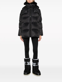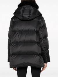 hooded padded jacket Highlights - Black - Duck down - Padded design - Shearling lining - Logo patch at the sleeve - Stand-up collar - Quilted - Detachable hood - Front zip fastening - Long sleeves - Straight hem - Two side inset pockets Made in France Composition Outer: Lamb Fur 100%, Polyamide 100%, Polyester 68%, Viscose 26%, Elastane 6% Lining: Duck Down 95%, Duck Feathers 5% SIZE & FIT Model measurements Height 5 ft 10 in(1.77 m) Bust/Chest 31.1 in(79 cm) Hips 35.03 in(89 cm) Waist 23.62 in(60 cm) FittingInformation Designed to be unstructured, offering a loose fit throughout The internal drawstring at the hem allows for fitted preferences Made from a padded non-stretch fabric, giving it no natural elasticity This piece fits true to size – take your usual size Washing instructions Hand Wash