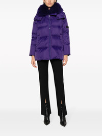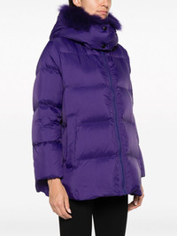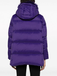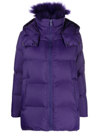 hooded padded jacket Highlights - Violet purple - Duck down/lambs wool - Padded design - Shearling lining - Quilted - Logo patch at the sleeve - Concealed hood - Stand-up collar - Front zip fastening - Long sleeves - Straight hem - Two side slit pockets Made in France Composition Outer: Lamb Fur 100%, Polyamide 100%, Polyester 68%, Viscose 26%, Spandex/Elastane 6% Lining: Duck Down 95%, Duck Feathers 5% Washing instructions Dry Clean Only