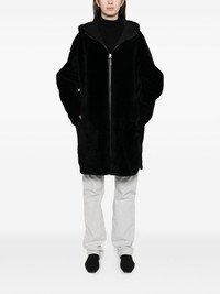 hooded zip-fastening coat Highlights - Black - Hood - Zip fastening - Long sleeves - Front pockets Imported Composition Lamb Shearling 100%, Polyester 100%, Calf Leather 100% SIZE & FIT Model measurements Height 5 ft 9 in(1.76 m) Bust/Chest 33.85 in(86 cm) Hips 35.43 in(90 cm) Waist 25.59 in(65 cm) Washing instructions Specialist Cleaning