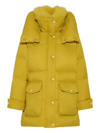 hoodedlambshearling down coat Highlights - Yellow - Lambshearling collar - Down filling - Hooded neckline - Snap button fastening - Welt-flap pockets Made in France Composition Outer: Polyamide 80%, Lamb Shearling 20% Trims: Duck Down 95%, Duck Feathers 5% Washing instructions Read Manufacturer Guidelines