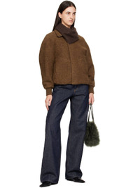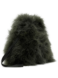 Turkey feather pouch. · Twin carry handles · Drawstring closure at throat · Card slot at interior · Plain-woven lining · H9" x W9" Supplier color: Amazone Body: 100% turkey feather. Lining: 100% polyester. Made in France 252594F048002
