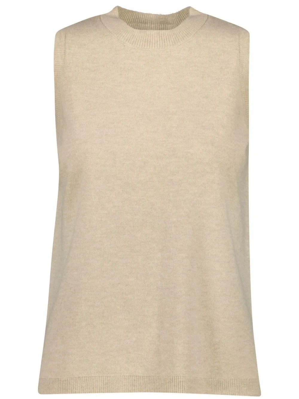 knitted tank top Highlights - Light beige - Crew neck - Sleeveless - Ribbed trim Made in France Composition Organic Wool 70%, Organic Cashmere 30% Washing instructions Read Manufacturer Guidelines