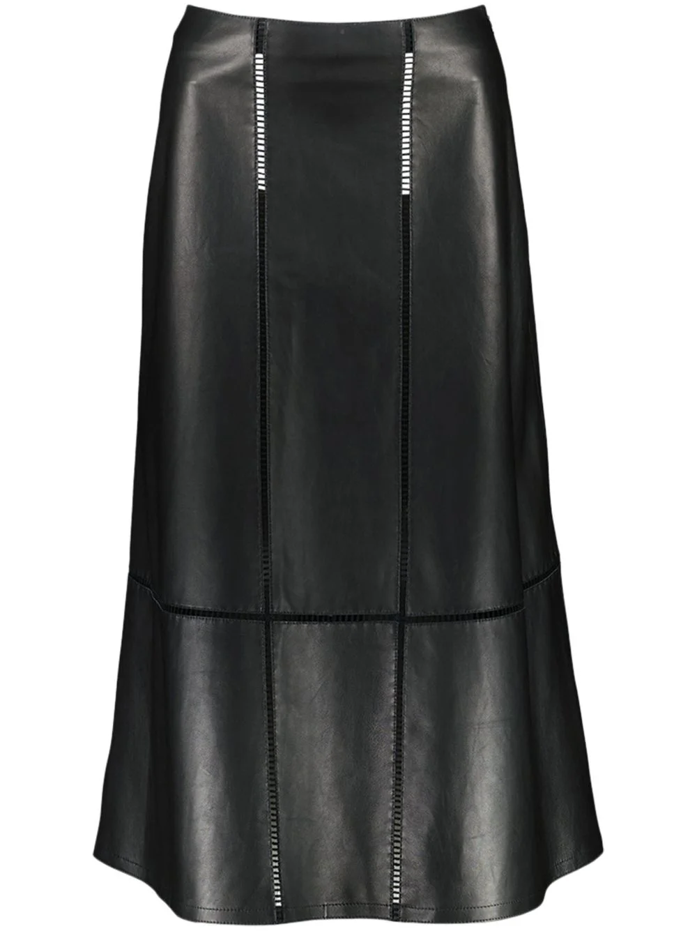 ladder-stitch lambskin skirt Highlights - Black - Concealed side zip fastening - A-line - Mid-calf length Made in France Composition Outer: Lambskin 100% Lining: Viscose 57%, Fabric 43% Washing instructions Read Manufacturer Guidelines