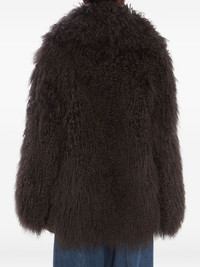 lamb-fur jacket Highlights - Brown - Long-haired texture - Hook closure - Two side inset pockets Made in France Composition Outer: Mongolian Fur 100% Lining: Silk 100%