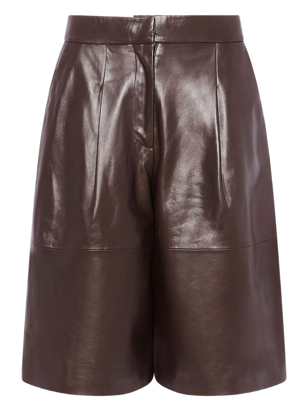 lamb-leather bermuda shorts Highlights - Brown - Leather - Front button fastening - Side seam pockets - Rear welt pockets Made in France Composition Outer: Lamb Skin 100% Lining: Viscose 57%, Polybutylene Terephthalate (PBT) 43% Washing instructions Specialist Cleaning