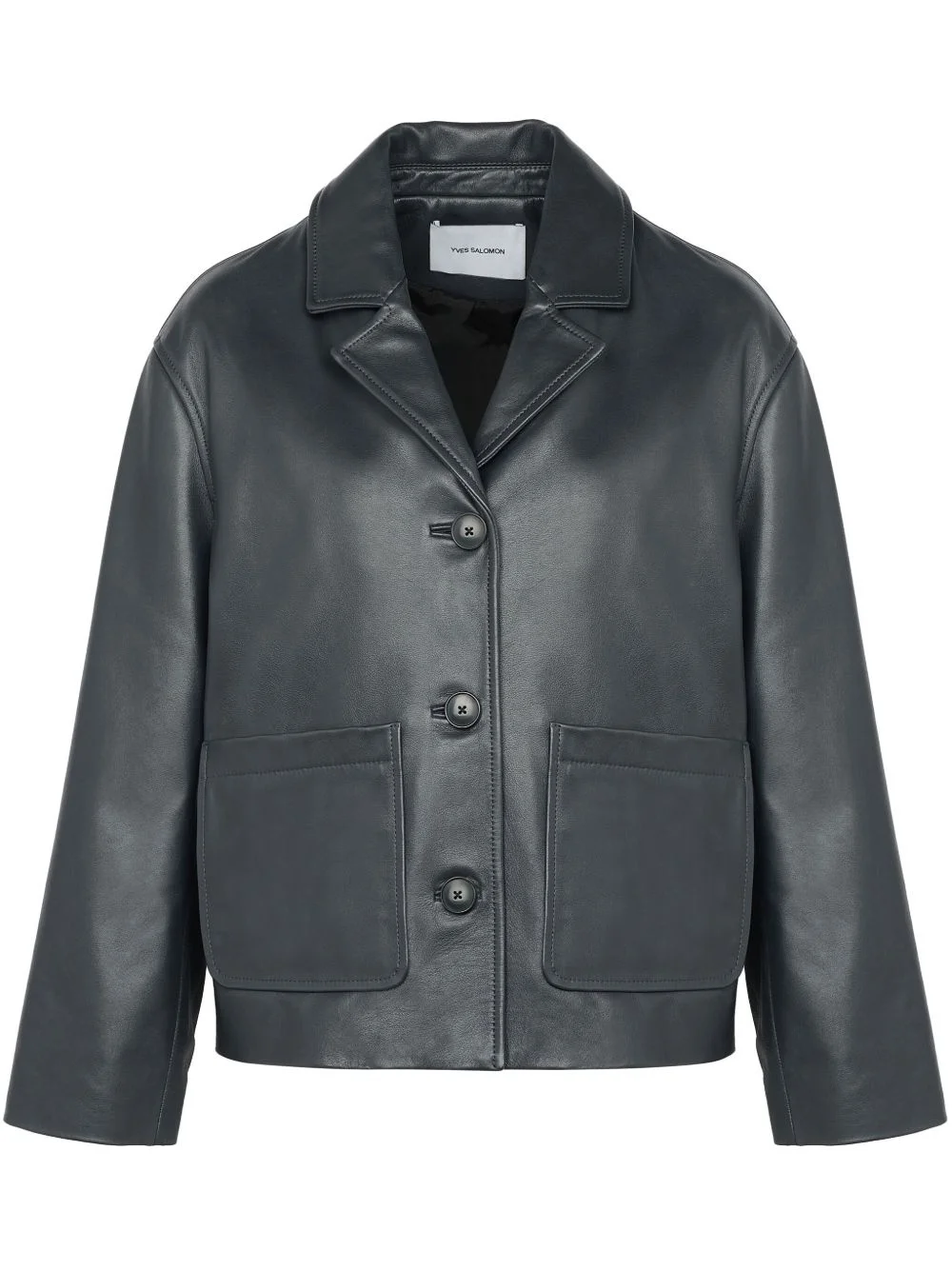 leather jacket Highlights - Black - Front button fastening - Two side patch pockets - Notched lapels Made in France Composition Outer: Leather 100% Lining: Viscose 57%