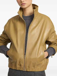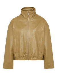 leather jacket Highlights - Light brown - Front zip fastening - High neck - Long sleeves - Side slit pockets - Elasticated hem Made in France Composition Outer: Lamb Skin 100% Lining: Organic Viscose 57%, Polyester 43% Washing instructions Read Manufacturer Guidelines