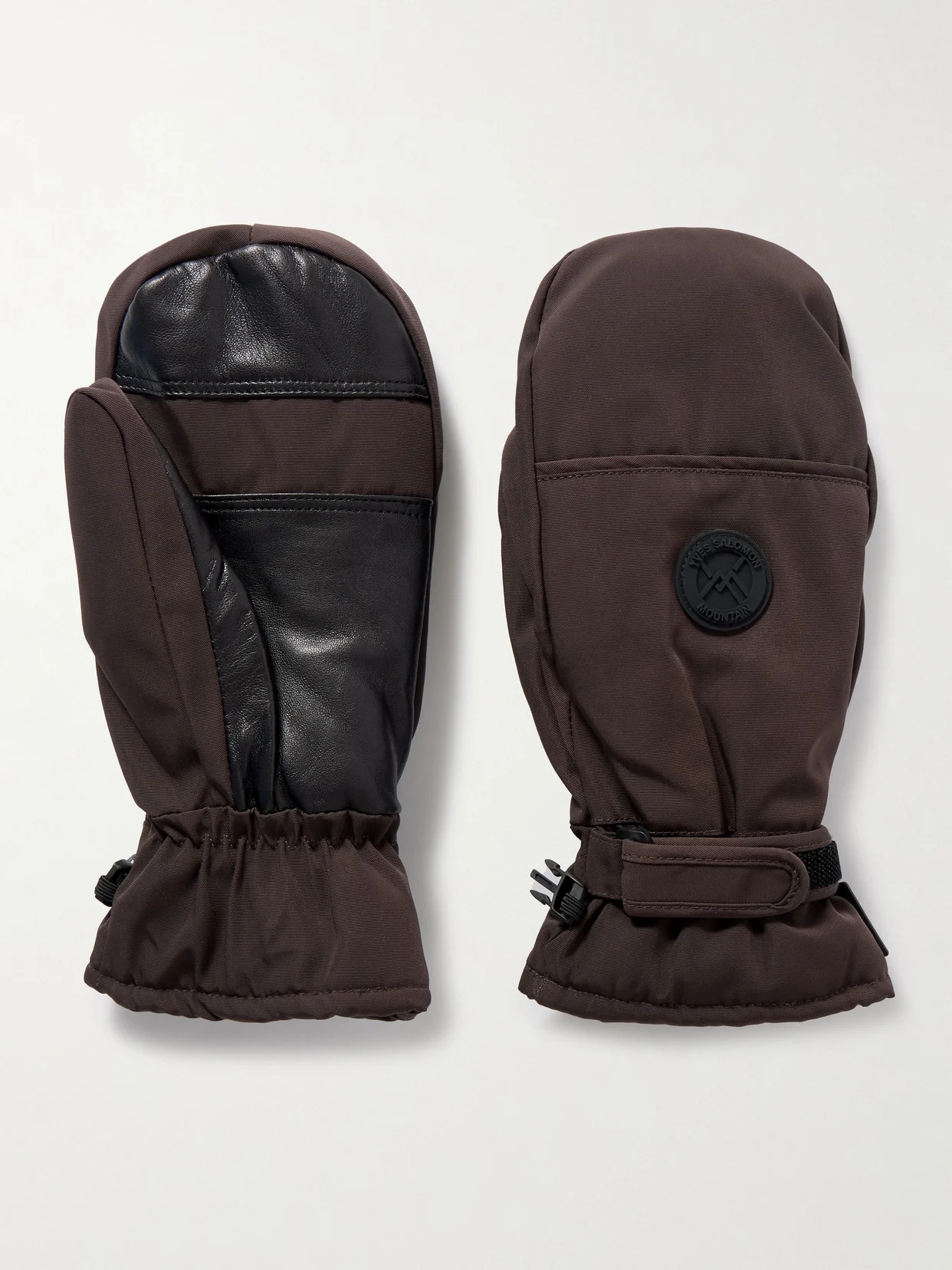Yves Salomon's mittens are made from technical shell that's padded for extra warmth in cold conditions. They're trimmed with leather and have VELCRO® straps that'll help keep the snow out on the slopes.