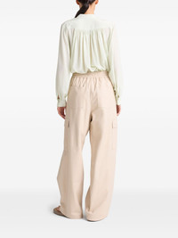leather trousers Highlights - Almond beige - Elasticated drawstring waistband - Two side slit pockets - Two rear patch pockets - Wide leg Made in France Composition Lambskin 100% Washing instructions Read Manufacturer Guidelines