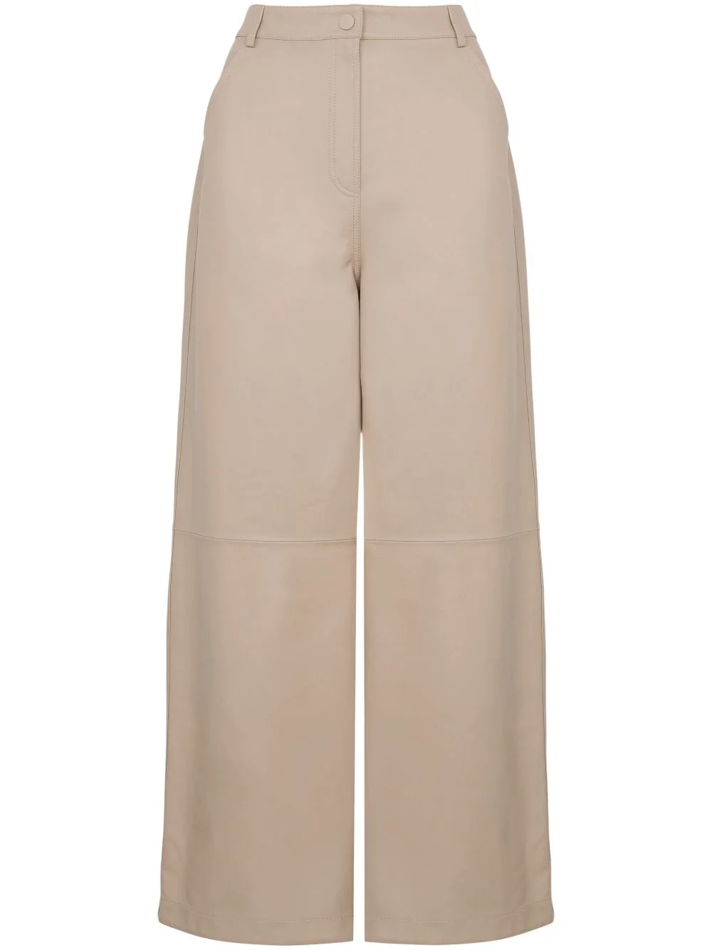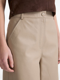 leather trousers Highlights - Sand beige - Front button fastening - Two side slit pockets - Two rear patch pockets - Belt loops Made in France Composition Outer: Lambskin 100% Lining: Viscose 57%, Polybutylene Terephthalate (PBT) 42% Washing instructions Specialist Cleaning