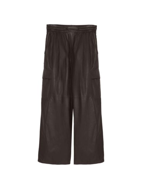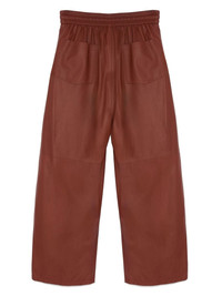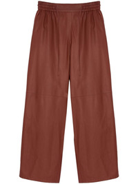 leather wide-leg trousers Highlights - Rust brown - Nubuck leather - Elasticated waistband - Two side slit pockets - Two rear patch pockets - Wide leg Made in France Composition Outer: Lamb Nubuck Leather 100% Lining: ENKA® Viscose 57%, PBT Elite 43%