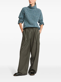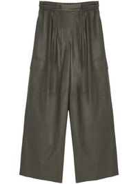 wide-leg leather cargo trousers Highlights - Dark green - Nubuck leather - Elasticated waistband - Two side slit pockets - Two side cargo pockets - Two rear patch pockets - Wide leg Made in France Composition Outer: Lamb Nubuck Leather 100% Lining: ENKA® Viscose 57%, PBT Elite 43%