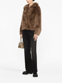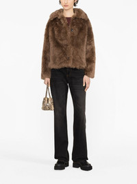 long-haired button-down jacket Highlights - Cognac brown - Wool - Lyocell - Faux-fur design - Oversized pointed collar - Front button fastening - Long sleeves - Straight hem Made in France Composition Outer: Wool 100% Lining: Lyocell 100%, Polyester 100% SIZE & FIT Model measurements Height 5 ft 10 in(1.78 m) Bust/Chest 30.7 in(78 cm) Hips 34.64 in(88 cm) Waist 23.22 in(59 cm)