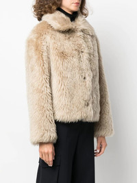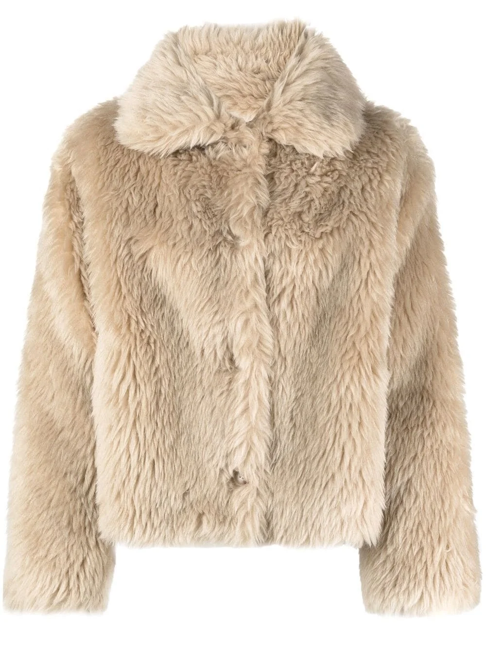 long-haired wool coat sand beige wool classic collar concealed front fastening long sleeves straight hem Made in France Composition Lining: Polyester 100% Outer: Wool 100% SIZE & FIT Model measurements Height 5 ft 9 in(1.76 m) Bust/Chest 33.07 in(84 cm) Hips 34.64 in(88 cm) Waist 25.59 in(65 cm) FittingInformation This piece fits true to size. We recommend you get your regular size Cut for a loose fit Made with a mid-weight non-stretch fabric Washing instructions Dry Clean Only