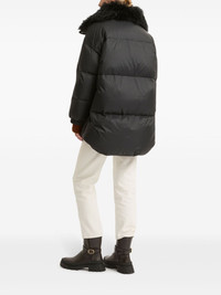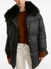 padded-design coat Highlights - Black - Duck feather - Padded design - Faux-fur collar - Front press-stud and zip fastening - Two side slit pockets - Long sleeves - Straight hem - Thigh-length Made in France Composition Outer: Polyamide 90%, Lambs Wool 10% Lining: Duck Down 95%, Duck Feathers 5%