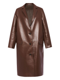 panelled leather coat Highlights - Brown - Leather - Button fastening - Straight cut - Front pockets - Notched lapels Made in France Composition Lamb Skin 100% Washing instructions Read Manufacturer Guidelines