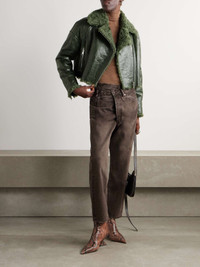 EDITORS'NOTES "A shearling jacket will not only keep you wonderfully warm on bitter winter days, but there's also something about the look that feels eternally cool," writes PORTER . Yves Salomon's green version has a textured-leather exterior and fluffy interior that extends over the lapels. The cropped, biker-inspired profile is endlessly stylish. SIZE & FIT Model measurements: - Fits true to size, take your normal size - Designed for a slightly loose fit - Cropped length - Dropped shoulder seam - Firm, non-stretchy shearling - Model is 177cm/ 5'10" and is wearing a FR 36 - Bust: 79cm/ 31" - Waist: 61cm/ 24" - Hip: 89cm/ 35" DETAILS & CARE - Tonal-green shearling - Zip fastening through front - 100% shearling (Lamb) - Specialist clean