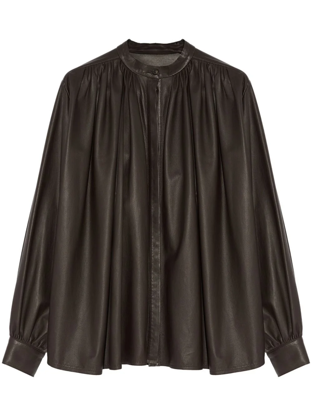 pleated shirt Highlights - Brown - Nubuck leather - Concealed front button fastening - Long sleeves - Fully pleated - Unlined - Buttoned cuffs Made in France Composition Lamb Nubuck Leather 100%