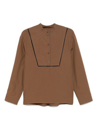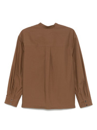 poplin blouse Highlights - Chocolate brown - Short front button fastening - Buttoned-cuff sleeves - Stand-up collar - Box-pleat detail Imported Composition Cotton 100%, Lamb Skin 100%