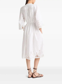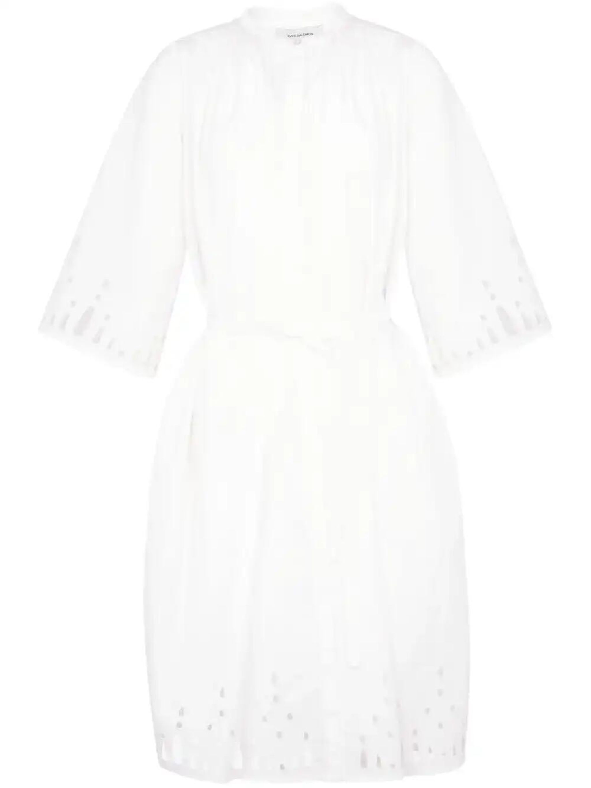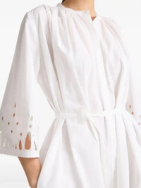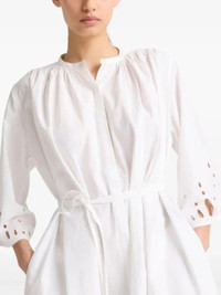white belted waist two side slit pockets broderie anglaise three-quarter length sleeves Size & Fit Model Measurements: Bust: 0cm Height: 0cm Hips: 0cm Waist: 0cm Fabric and Care Designer Style ID: 25EYR01610COXW Designer Colour: A1042 WHITE Composition: Cotton 100% Washing instructions: Read Manufacturer Guidelines Made in France