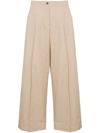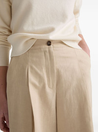 pressed-crease trousers Highlights - Sand beige - Front button fastening - Two side slit pockets - Two rear jetted pockets - Wide leg Made in France Composition Cotton 58%, Linen/Flax 30%, Polyamide 12%